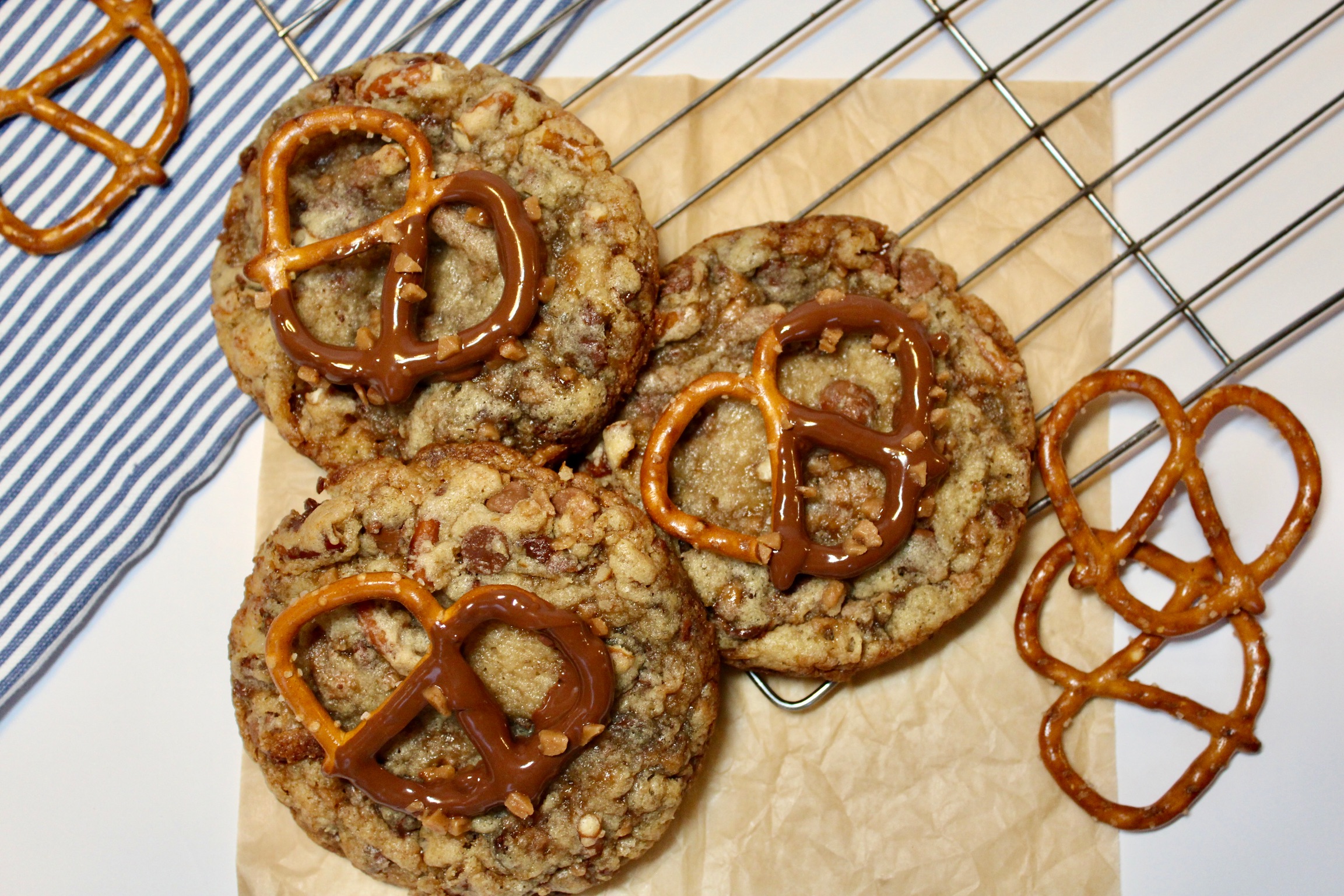 The ultimate balance of sweet, salty, and crunchy! Rich chocolate, buttery toffee, and crispy pretzel pieces come together in this dangerously good cookie.