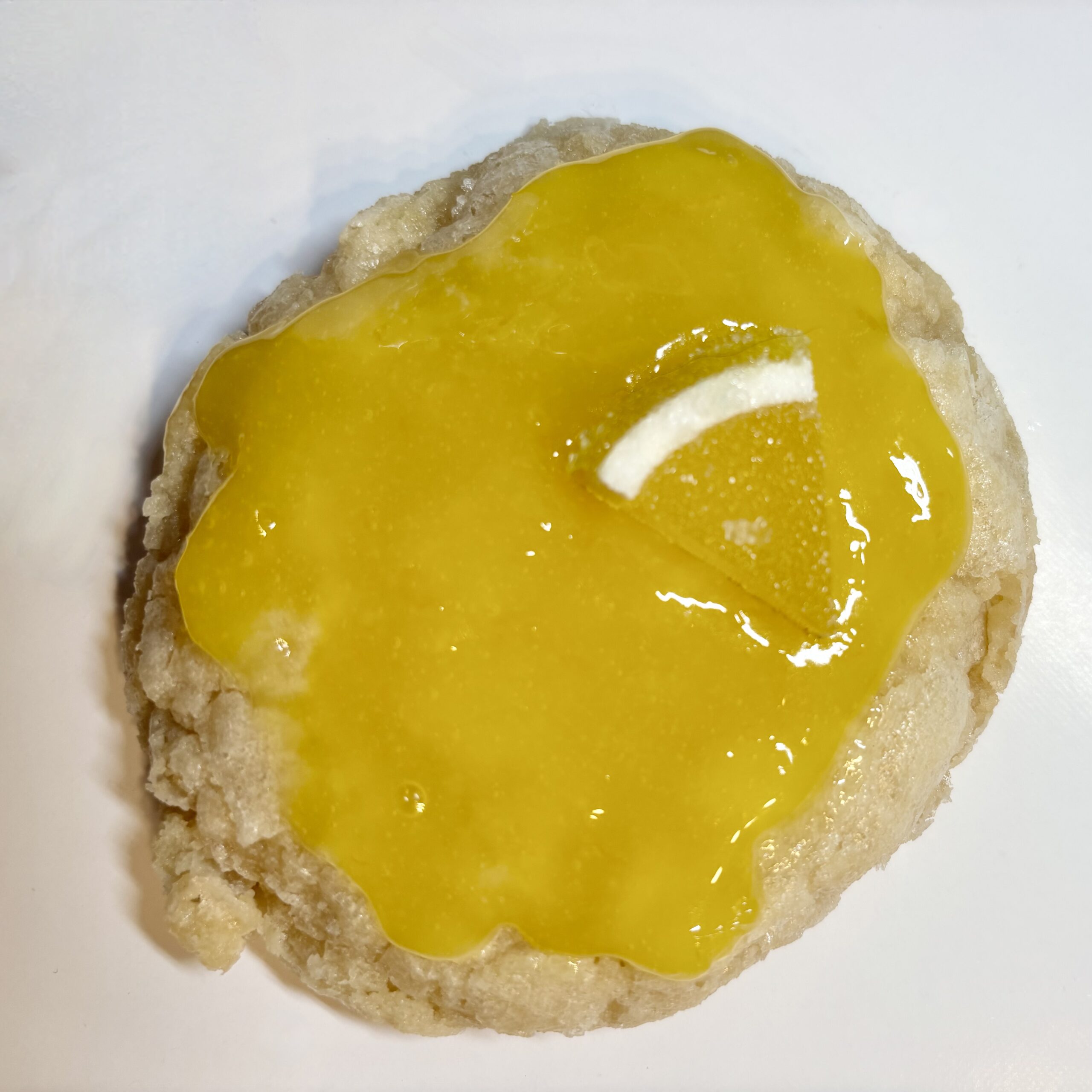 A tangy delight. This soft lemon crinkle cookie is topped with homemade lemon curd for a bright, zesty finish that’s bursting with flavour.